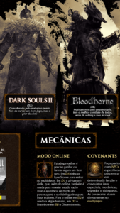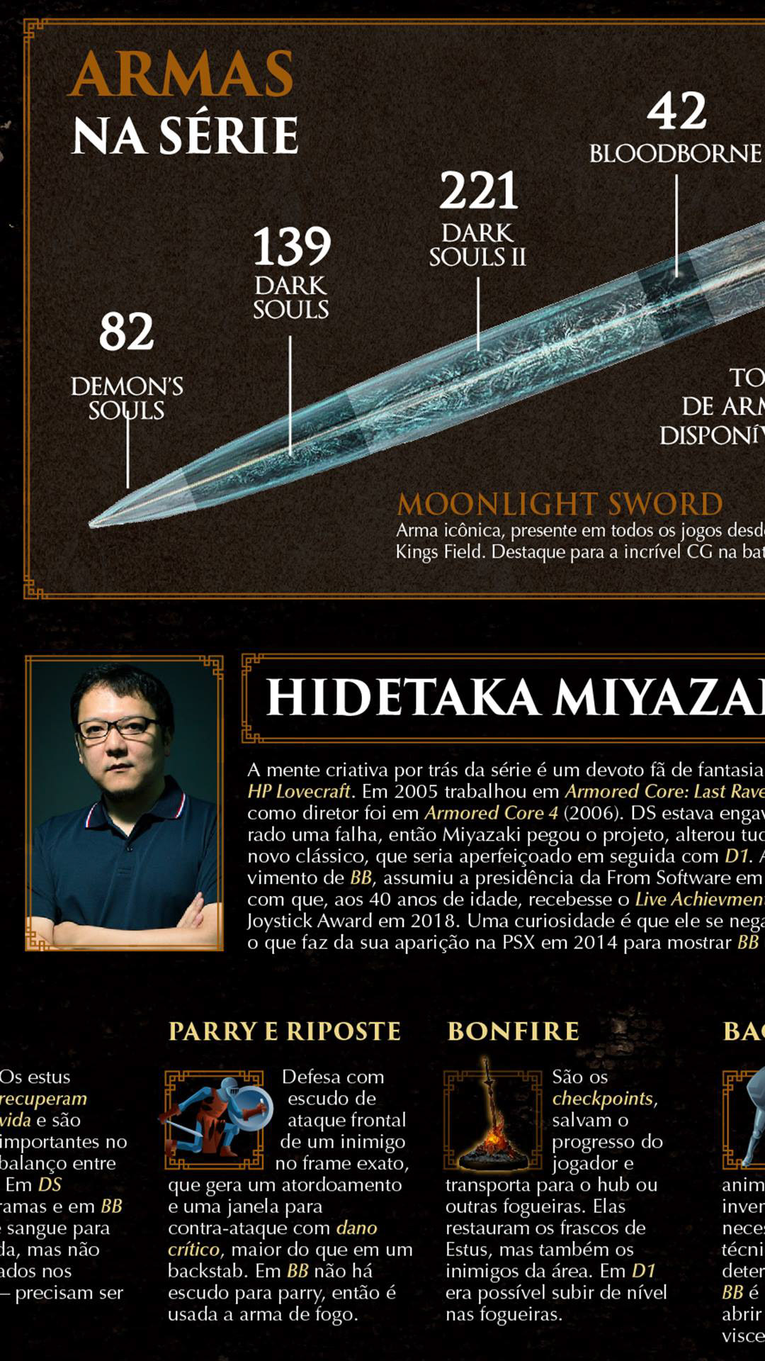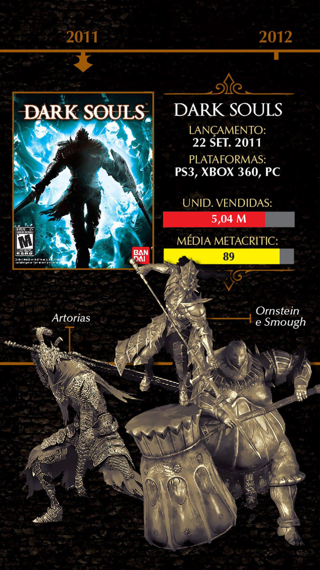 Infográfico sobre o série SoulsBorne da From Software, disponível e publicado originalmente no site de games Jogazera. Produzido e editado no Adobe Illustrator e Adobe Photoshop no tamanho A2 (420x594mm).