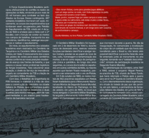 Projeto gráfico e programação visual da exposição “A Segunda Guerra Mundial e Passo Fundo”, realizada pelo Instituto Histórico de Passo Fundo. Painéis impressos com medidas principais de 70×120 cm, 130x120cm e 210x120cm, além de outras dimensões. Edição de aprox. 200 fotografias para impressão. Curadoria, pesquisa, produção, fotografias, objetos e textos pela equipe do IHPF.