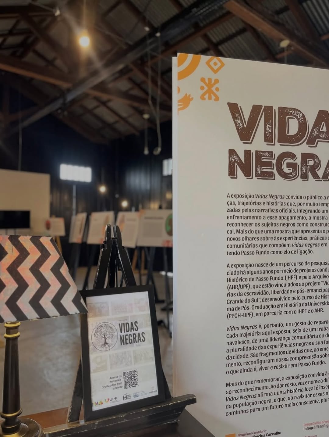 Design gráfico e programação visual da exposição “Vidas Negras”, realizada pelo Instituto Histórico de Passo Fundo (IHPF), o Arquivo Histórico Regional (AHR/UPF), o Curso de História e o Programa de Pós-Graduação em História da Universidade de Passo Fundo (PPGH/UPF).
