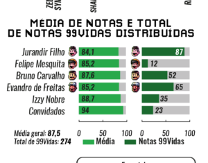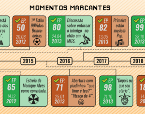 Infográfico comemorativo dos 500 podcasts do 99Vidas, disponível no site 99Vidas. Produzido e editado no Adobe Illustrator no tamanho A3 (297x420mm). Com pesquisa de dados e informações por Fabio Moron, Kalil Vinicius, Leandro Barbosa, Leandro Travezani e Ricardo Begalli. Infografia e diagramação por Marcus Vinícius Freitas. Revisão e Edição de Evandro de Freitas. Artes de Diogo Senna. Arquivo de impressão (PDF) disponível neste link.