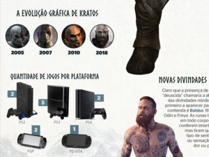 Infográfico sobre o jogo “God of War: Ragnarök”, publicado 4 de novembro de 2022 no site Jogazera. Produzido e editado no Adobe Illustrator no tamanho A3 (297x420mm). Com revisão ortográfica de Fabrício Barbosa.
