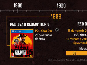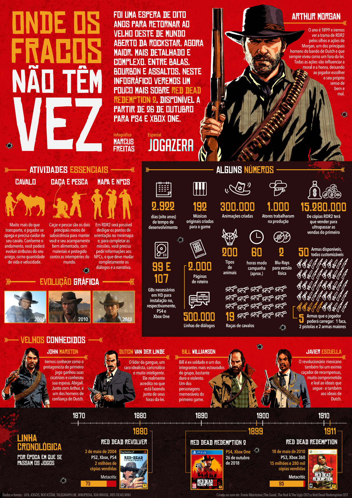 Infográfico sobre Red Dead Redemption 2, disponível e publicado originalmente no site de games Jogazera. Produzido e editado no Adobe Illustrator e Adobe Photoshop no tamanho A3 (297x420mm).