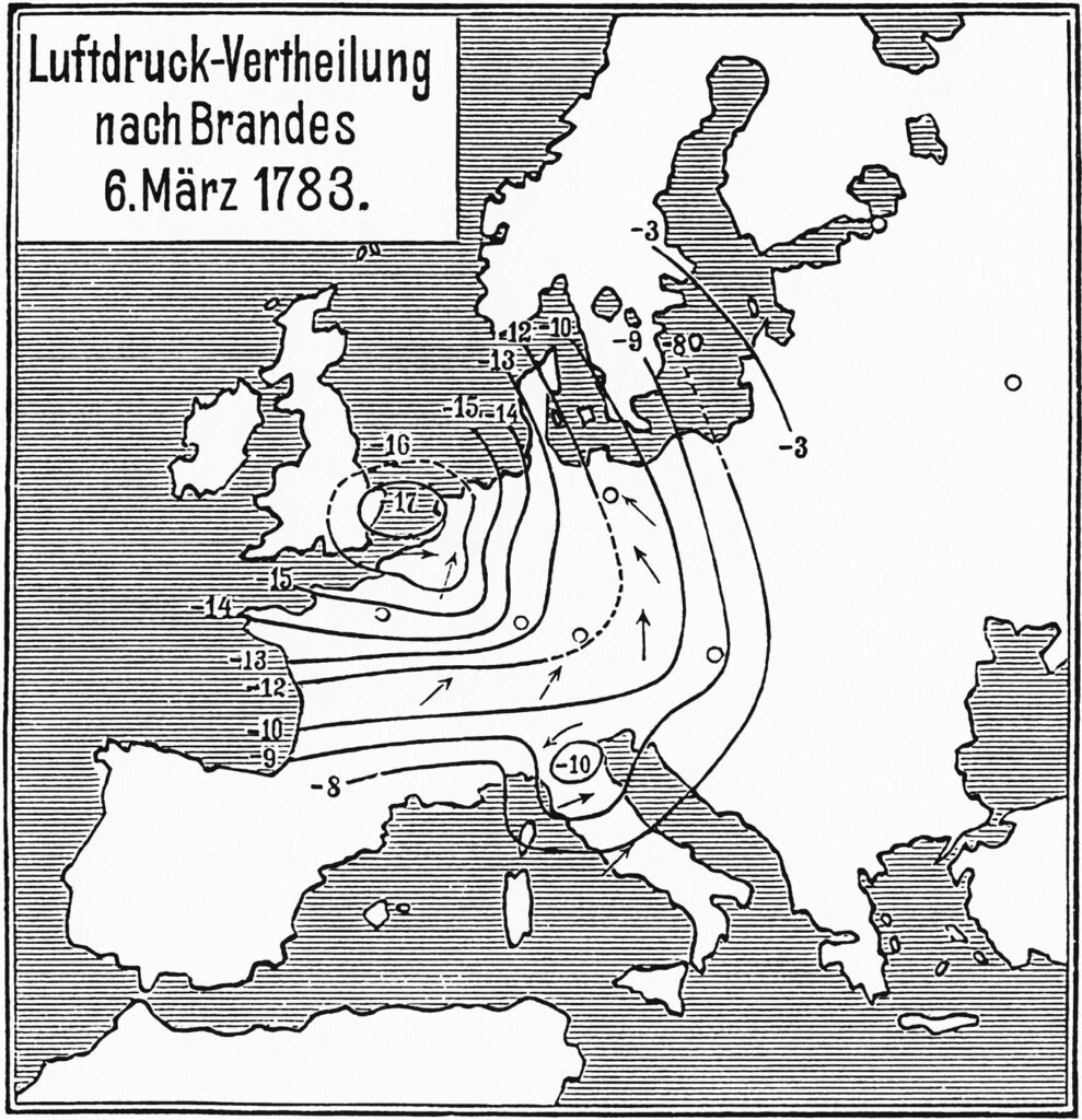 O físico, meteorologista e astrônomo alemão Heinrich Wilhelm Brandes (1777-1834) criou os primeiros mapas meteorológicos em 1816. Contudo, a coleta dos dados usados para criá-los levou décadas.